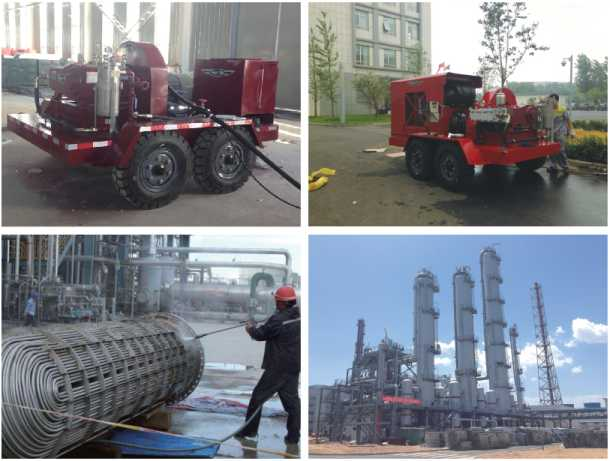 ♦蒸发器、干燥器清洗,裂解炉换热器,急冷换热器除焦清洗,用于清洗容器,如热交 换器、高压釜、反应器、冷却塔、贮罐、槽车等。