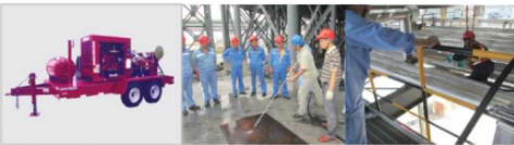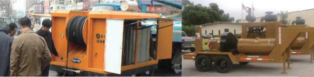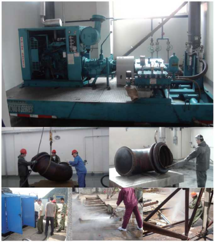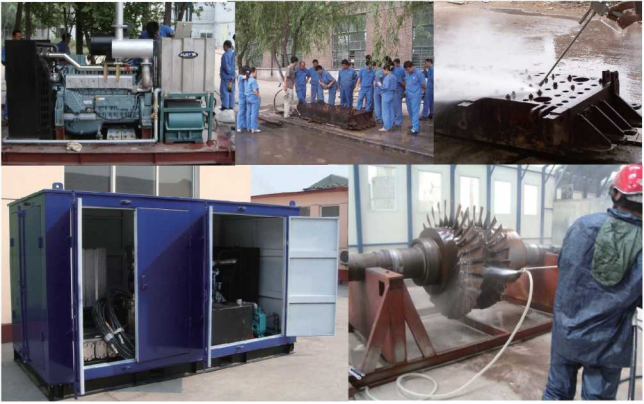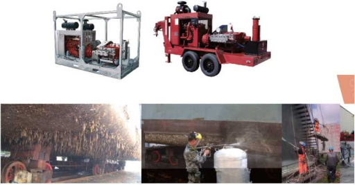 湿喷砂清洗:8MGHC50 / 30ET(加湿喷砂系统) ♦压力:50MPa 流量:22—30L / min 功率:30kW