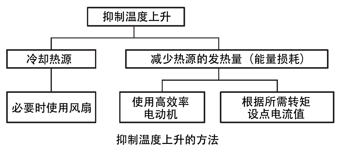 因为电能无法百分之百的转换为动能,会有一部分以热量的形式损失,所以要减少发热, 需选择效率更高的电动机。另外,步进电动机可以根据所需的转矩设定电流大小,也能够抑制发热。