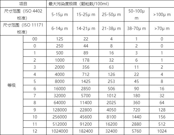 通过颗粒分析法明我们可以比较直观的了解液压油中的固体颗粒的大小,以及粒径分布,那么这个等级的划分具体要求是什么呢,下面就是划分等级的参数