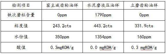 通过对水泥设备在用润滑油脂主要理化指标的定期跟踪监测,及时发现设备用油的劣化程度及污染原因,评价设备的润滑状态,指导企业采用合理的润滑方式和换油周期。各种设备用油的理化检测项目有数十项,但从长期跟踪监测的经济性考虑,要选择较合理的检测项目,达到较大的检测目的,既能实现设备的润滑与磨损状态监测,又能为企业节省检测费用。