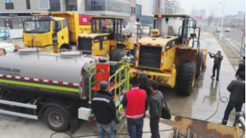 该环卫使用我公司的冷热水清洗机 JM3305CF,燃油加热燃油驱动设 备。把清洗设备安装在洒水车的尾部,利用洒水车的水箱供水。主要清洗 环卫扫雪车,清障车,垃圾运输车等车辆,效果非常好。设备使用率高, 维护方便。按照维修手册进行保养,易损件及时更换,清洗起来得心应手, 得到客户好评。