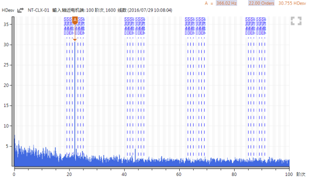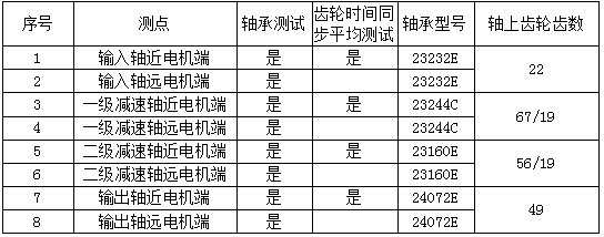 检测参数:轴承测试:100 阶次, 1600 线数 齿轮测试:同步平均 200次